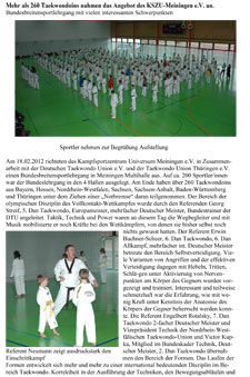 Mehr als 260 Taekwondoins nahmen das Angebot des KSZU-Meiningen e.V. an. Bundesbreitensportlehrgang mit vielen interessanten Schwerpunkten