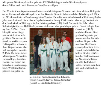 Taekwondoins des KSZU-Meiningen e.V. erfolgreich auf den Bavaria Open 3 mal Gold, 4 mal Silber und 5 mal Bronze