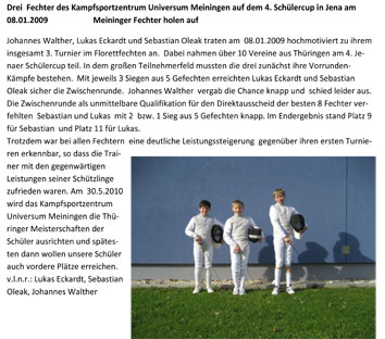 Drei Fechter des Kampfsportzentrum Universum Meiningen auf dem 4. Schülercup in Jena am 08.01.2009 Meininger Fechter holen auf