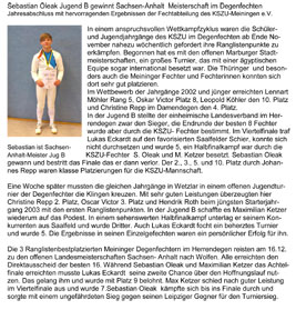 Sebastian Oleak Jugend B gewinnt Sachsen-Anhalt Meisterschaft im Degenfechten Jahresabschluss mit hervorragenden Ergebnissen der Fechtabteilung des KSZU-Meiningen e.V.