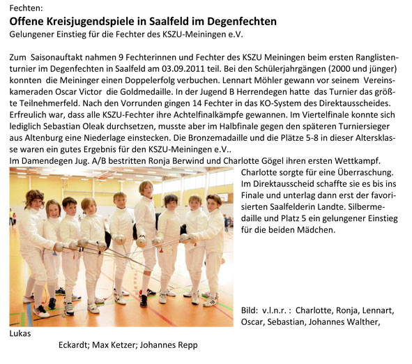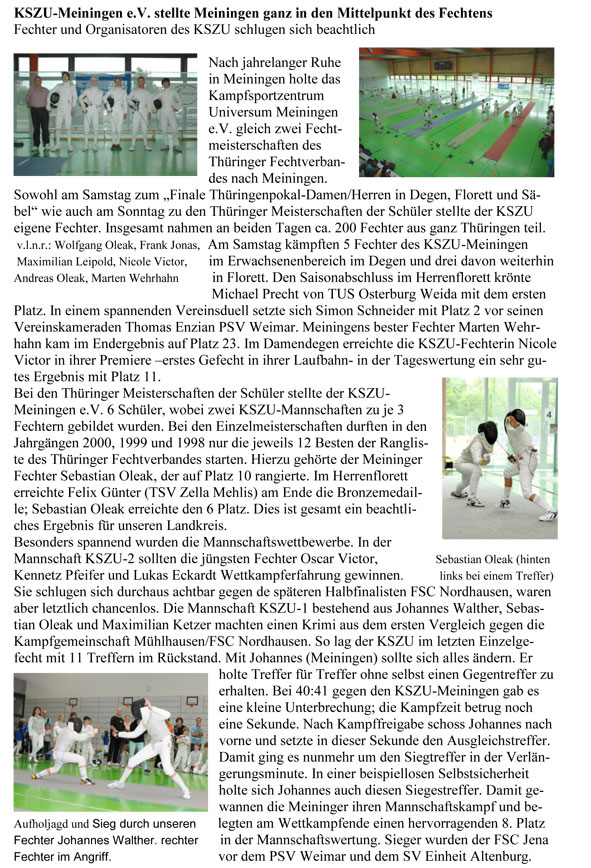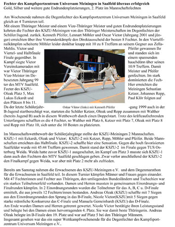KSZU-Meiningen e.V. stellte Meiningen ganz in den Mittelpunkt des Fechtens