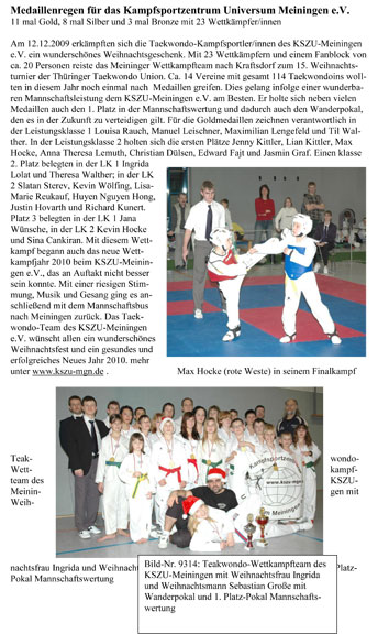 Vorzeitiges Weihnachtsgeschenk für 29 Taekwondoins beim KSZU-Meiningen e.V.