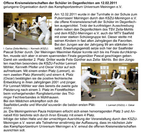 Offene Kreismeisterschaften der Schüler im Degenfechten am 12.02.2011