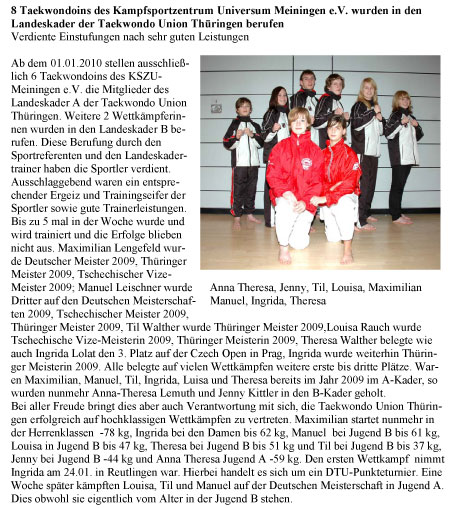 8 Taekwondoins des Kampfsportzentrum Universum Meiningen e.V. wurden in den Landeskader der Taekwondo Union Thüringen berufen