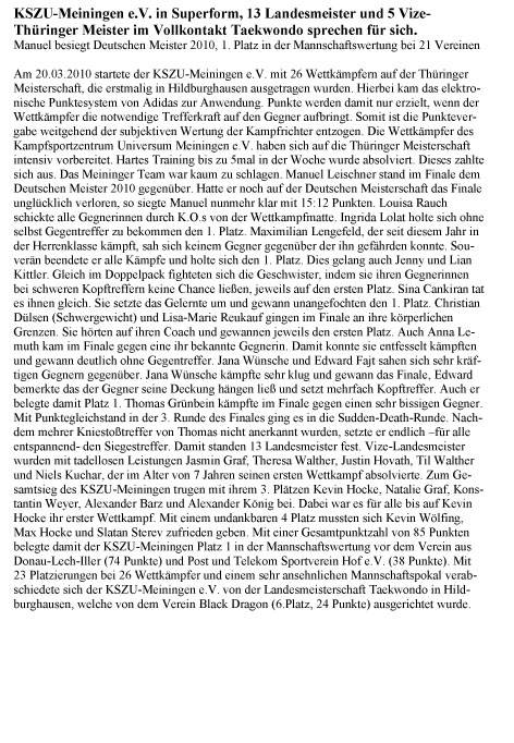 10 Thüringer Meister für das KSZU- Meiningen e.V.