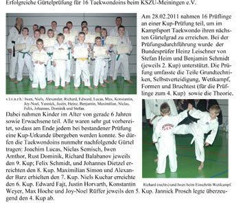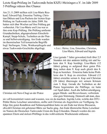 Letzte Kup-Prüfung im Taekwondo beim KSZU-Meiningen e.V. im Jahr 2009