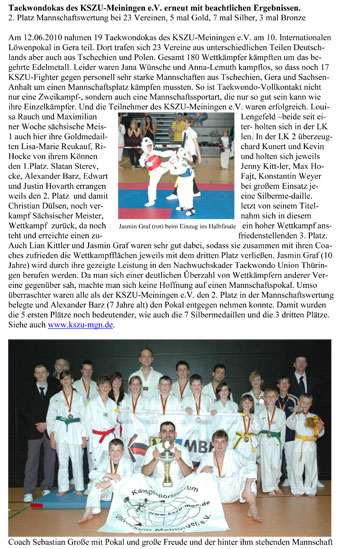9. Internationaler Keltencup sprengte alle Erwartungen. KSZU-Meiningen e.V. holte 2. Platz in der Mannschaftswertung
