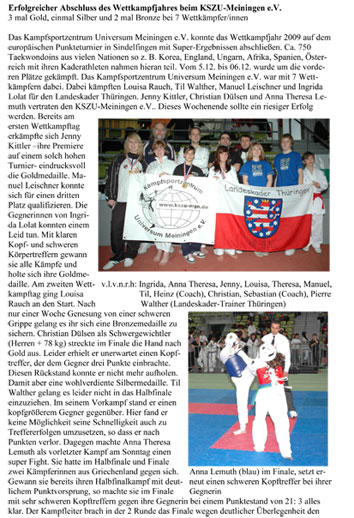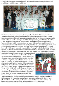 Super-Leistung der Taekwondoins des KSZU-Meiningen e.V. 8 mal Gold, 3 mal Silber, 2 mal Bronze und 2. Platz in der Mannschaftswertung