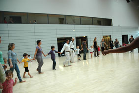 schlossen Fatima und Serge mit Bewegungen aus dem Kampfsport Capoeira an.