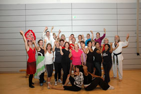 ca. 25 Damen und 4 Herren die sich auf das Training von Fatima einlassen