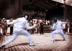 sich unter voller Schutzkleidung einen Vollkontakt-Wettkampf. Stefan und
