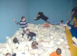 beim Sturz auf das Trampolin oder in die Schaumstoffgrube austoben.